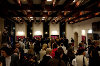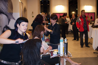 Celá akce začala v 18 hodin, slavnostním rautem a vernisáží výstavy portrétů žáků-jogínů. Pánové a dámy se procházeli, usrkávali šampaňské, ukusovali tyčinky a sledovali, jak kadeřníci z vlasového studia Pure vytváří účesy na hlavách modelek.