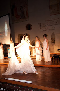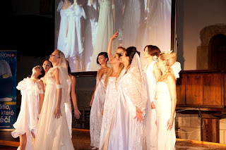 Když se pak hudba změnila, na scénu pomalu začaly vztupovat modelky v kolekci svatebních šatů návrhářky Anny Šenkové. Tanečnice tančila mezi nimi, rozhazovala sníh a dívky v bílých šatech zářily.