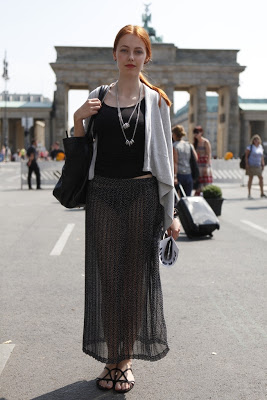 | http://streetstylebystela.blogspot.com/ - Slečna z přehlídky Leny Hoschek - jednalo se o opravdový vintage kousek. | |