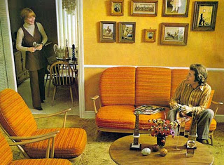 | Outfit který má paní na sobě zcela jsitě není z bavlny. Můj hlavní rádce v dobových látkách už nežije, ale jsem si jistá že se jedná o nějaký hrubý umělotinový úplet, dost možná s vyplétaným vzorem. |